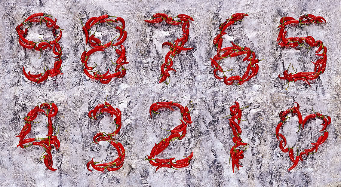 Pepers 0 tot 9 op lood Peppers try to count